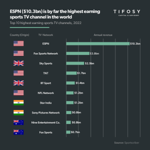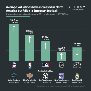 Snapshot | 3 min read MLS and CSL: trading players with Europe To commemorate the launch of the 2021 MLS season, an overview of transfers with European clubs – compared to the Chinese Super League. Briefing | 7 min read The IPL – hitting the big leagues? The biggest cricket league in the world has grown rapidly since its inaugural season in 2008. Its 14th season began on the weekend. Analysis | 8 min read Stronger together: merging football leagues The dominance of Europe's Big 5 and North America's Big 4 is encouraging smaller leagues to join forces to compete. LATEST HAPPENINGS IN THE SPORTS INDUSTRY QuickTake Masters winner prize for 2021 was £2.07m for the third year running QuickTake Intermediary and agents' fees totalled £273m across all Premier League clubs in 2021 QuickTake The New York Yankees are the first team in the MLB to hit a valuation of $6 billion QuickTake ESPN ($10.3bn) is by far the highest earning sports TV channel in the world QuickTake Wages to revenue ratios have been trending upwards in the Big Five leagues QuickTake Globally, sports fans self-report watching on average 3.5 hours of live sports per week QuickTake In key markets, awareness of DAZN is almost as high as Netflix and Amazon amongst sports fans QuickTake Formula One had 445m viewers in 2021, a slight increase on the shortened 2020 season QuickTake After cancellations in 2020, there are five Formula 1 races in the Americas in 2022 QuickTake New FIFA rules mean over €500 million of players could exit Russian football QuickTake Over €12 billion worth of talent managed by top 25 football player agencies QuickTake Fantasy football NFT platform Sorare saw over $40m in sales during February 2022 QuickTake Manchester City squad value highest in Europe reaching nearly €1 billion QuickTake eSports' Team Spirit earned nearly $20m in 2021, 38% of the top 10 overall earnings QuickTake Half of the top 20 highest spending clubs in 2021/22 are English QuickTake NFL sponsorship revenues reach $1.62 billion in 2021, an increase of 86% since 2010 QuickTake The average point has cost Premier League clubs £1.11m in transfer expenditure since 2011/12 QuickTake 2021 saw the lowest spend on transfer fees in 5 years despite 2nd highest number of transfers QuickTake Premier League matchday and commercial revenues projected to reach 8-year high QuickTake Brazil's Campeonato Brasileiro Série A is home to over $1.2bn worth of talent QuickTake Price paid for new players down -65% in La Liga, whilst prices soar in Ukraine and Serie B QuickTake Italian and English clubs loaned out the most players during 2020/21 QuickTake Since Endeavour's 2016 takeover, the UFC's revenues have jumped 35% to $930m in 2021 QuickTake Winter Olympics broadcasting revenues peaked in 2018 at a record $1.4 billion QuickTake Premier League winter transfer window spend at four year high QuickTake Over $133 billion has been spent in the last 30 years by Olympic host cities QuickTake Over 21% of eSports market dominated by newly acquired Activision Blizzard Inc QuickTake Following the RWD Molenbeek purchase, 11 Belgium clubs are now under foreign ownership QuickTake Average valuations have increased in North America but fallen in European football QuickTake Top 5 countries see over $5 billion in sports technology investments during 2017-2021 QuickTake Close to $7 billion in stadium projects planned for sports across the United States QuickTake Share prices of publicly listed football clubs fell -28% on average during 2021 QuickTake Nearly half a billion pounds worth of talent has originated from South London QuickTake NHL allows private equity investment to enter league as teams end 2021 valued at over $27 billion QuickTake Released 2020/21 accounts show average match day revenue losses of 83% for English clubs QuickTake Football NFT platform Sorare ended 2021 with record sales volume of over $165m QuickTake The top 10 countries paid over $435m in intermediary (agent) fees for transfers in 2021 QuickTake New Newcastle United owners account for 80% of Premier League owners' wealth QuickTake 83% of all Crypto sports partnerships have been with four companies QuickTake Parachute payments multiply Championship broadcasting revenues by 4.8x for relegated clubs QuickTake Over 75 Crypto sports partnerships launched globally in 2021 QuickTake A Premier League transfer tax would have generated over £750m in the last 5 years QuickTake NBC more than doubles its broadcasting deal with the Premier League for coverage in the US QuickTake Inter Milan had the largest positive net transfer income in the whole of Europe QuickTake Premier League clubs' aggregate kit and shirt sponsorship deals are almost double that of La Liga QuickTake The Bundesliga was the only league out of the Big 5 to have a positive net income from transfers QuickTake Amazon Prime Video was the most used online service to watch sports in the UK in 2021 QuickTake Overall, revenues of the Big Five in 2019/20 were down €1.9bn (11.0%) compared to 2018/19 QuickTake PSG's Instagram following started to increase after Messi's departure from Barcelona QuickTake As of 2020, Ligue 1 clubs' player trading debts exceeded their receivables QuickTake PPV revenue per user has grown at the rate of 2.7% per annum in the five years up to 2021 QuickTake 78% of Bundesliga stadiums are sponsored, significantly more than other European leagues QuickTake Macron is the most used pro kit supplier in England, but has no clubs from the Premier League QuickTake Real Madrid commands the largest income per year from a primary shirt sponsor QuickTake The franchise value of both NBA finalists has grown dramatically over the past 10 years QuickTake Only 3 of the top 20 most valuable teams are not from North America QuickTake Clubs involved in The Super League have seen their stock prices fluctuate dramatically QuickTake The Super League revenue distribution is similar in structure to US sports QuickTake Lower turnover du